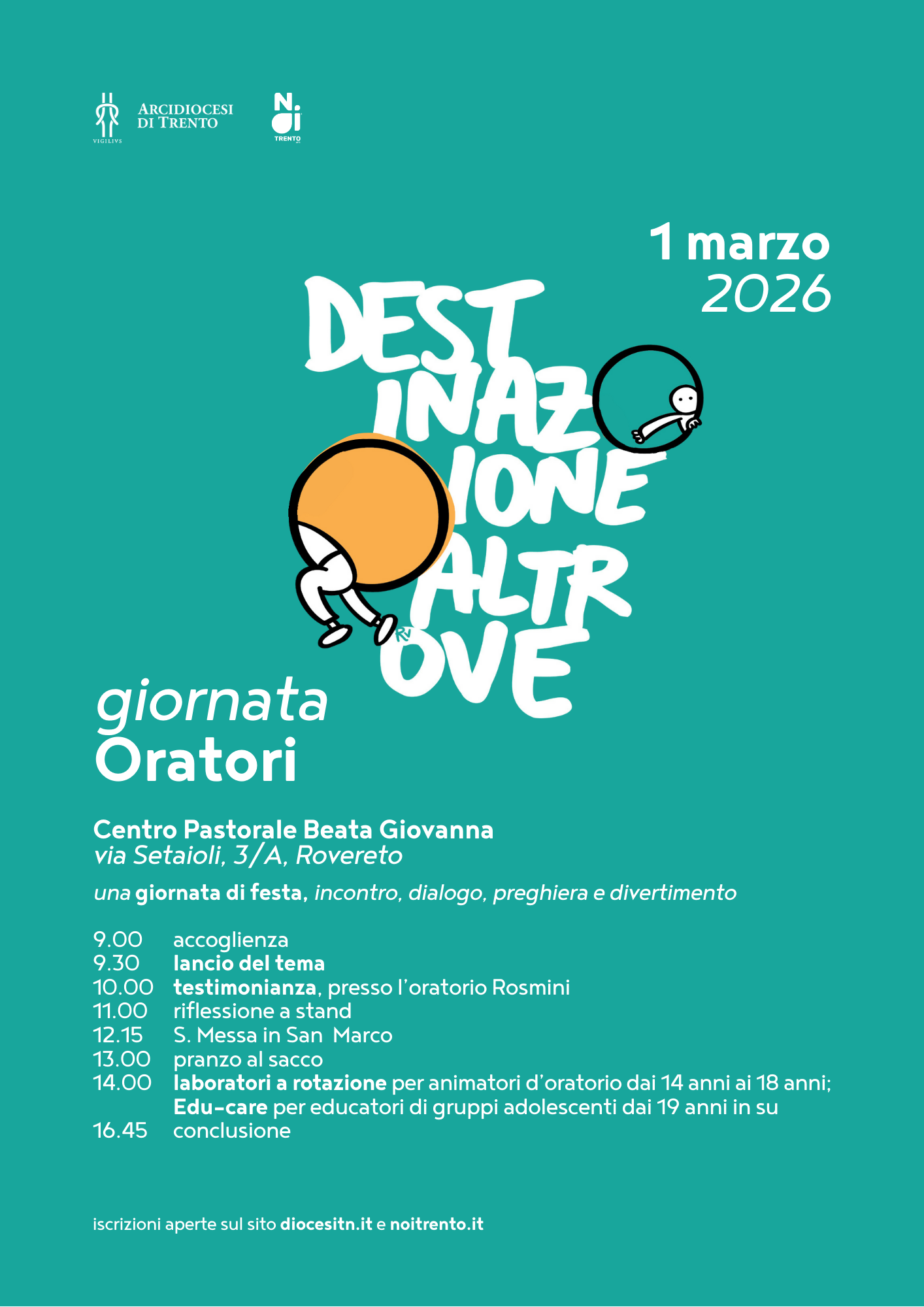 - per informazioni puoi chiamare in segreteria al 340 142 0694 – 0461 891203 o scrivere a trento@noiassociazione.it o contattare il servizio di Pastorale Giovanile: 345 7060488 – giovani@diocesitn.it