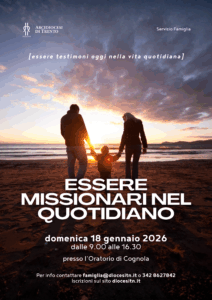 Giornata formativa per coppie domenica 18 gennaio a Cognola: essere missionari nel quotidiano.