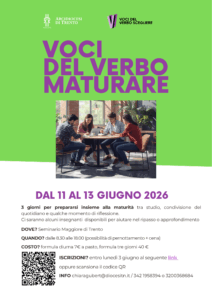 Dove? Presso il Seminario Maggiore di Trento; non mancheranno spazi interni ed esterni per lo studio individuale e/o a gruppi. Si potrà anche usufruire della biblioteca “Vigilianum”.