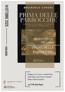 Martedì 14 ottobre alle 17.30 presso il polo culturale diocesano Vigilianum verrà presentato il volume di Emanuele Curzel intitolato “Prima delle parrocchie. Comunità rurali e chiese in area trentina”, parte della collana di monografie della Società di Studi Trentini di Scienze storiche.