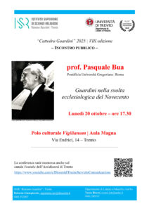 “Guardini nella svolta ecclesiologica del Novecento”: sarà questo il tema al centro della prossima “Cattedra Guardini“, in programma a Trento lunedì 20 ottobre alle ore 17.30 presso l’Aula Magna del Polo culturale Vigilianum.