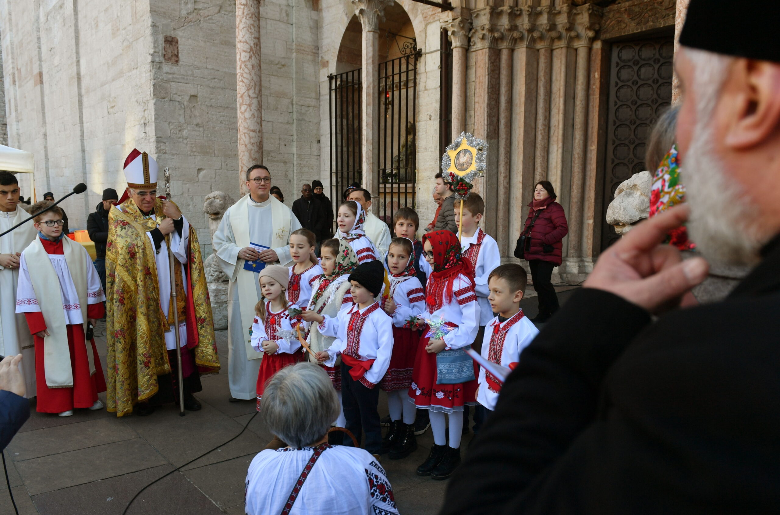La celebrazione di quest’anno, dal titolo giubilare “Raccontiamo la speranza”, è stata arricchita da una presenza significativa: una nutrita rappresentanza della comunità ortodossa moldava di Rovereto. Il coro dei ragazzi della loro scuola parrocchiale ha eseguito alcuni canti sia all’esterno del Duomo sia all’interno, al termine della celebrazione. Particolarmente sentito il saluto del responsabile della comunità padre Ion Grebanosu, che ha portato all’Arcivescovo gli auguri di Natale a nome della sua comunità, invocando pace, salute e speranza.