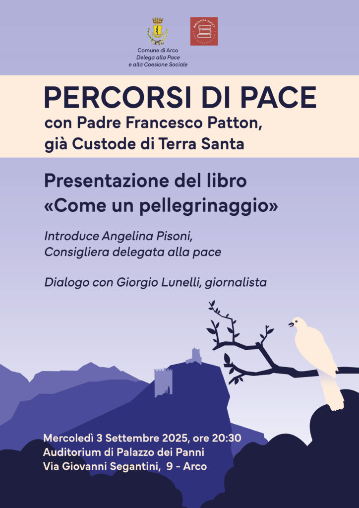 Mercoledì 3 settembre alle 20.30 ad Arco all’auditorium di Palazzo dei Panni su invito del Comune arcense e con il patrocinio del Forum per la pace Padre Francesco Patton, ex Custode di Terra Santa, racconterà la sua esperienza e farà una riflessione sulla pace in Medio Oriente e a Gaza.