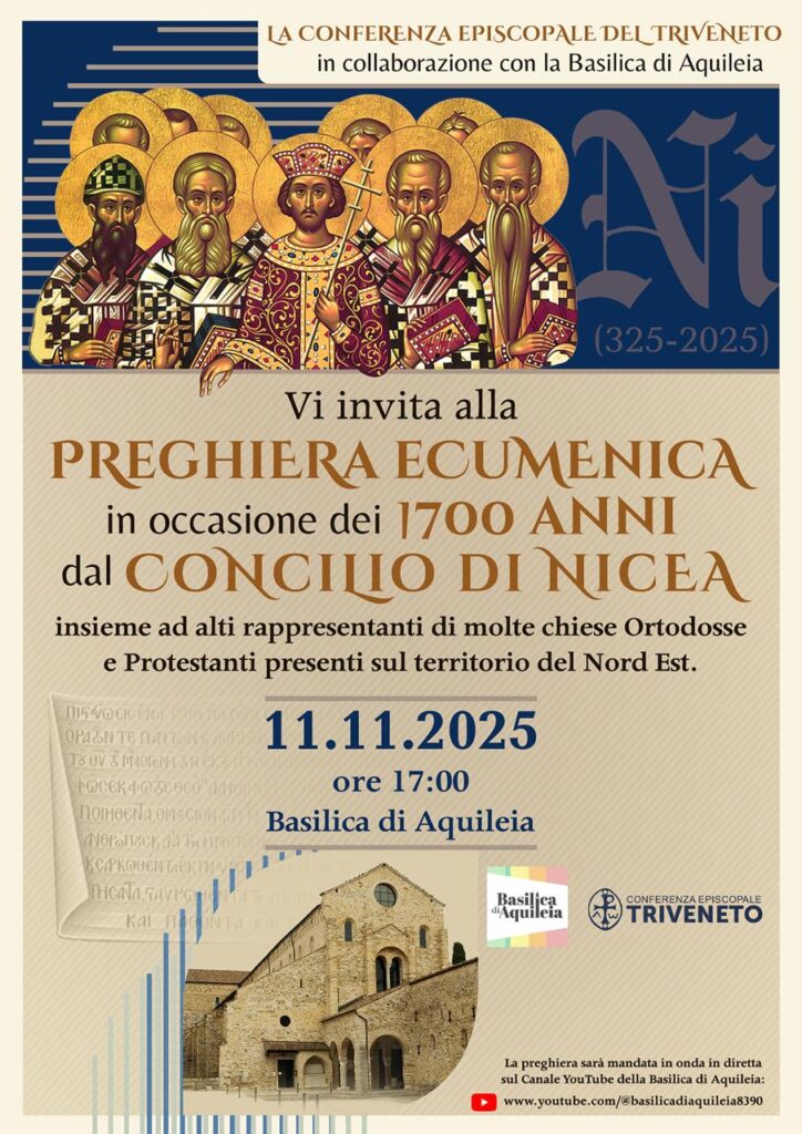 Ci riuniamo in Santa Margherita, ma saremo collegati con la basilica di Aquileia, dove si riuniranno i vescovi del Nord Est insieme a rappresentanti di tante Chiese cristiane del nostro territorio, per celebrare ecumenicamente insieme i 1700 anni dal Concilio di Nicea.