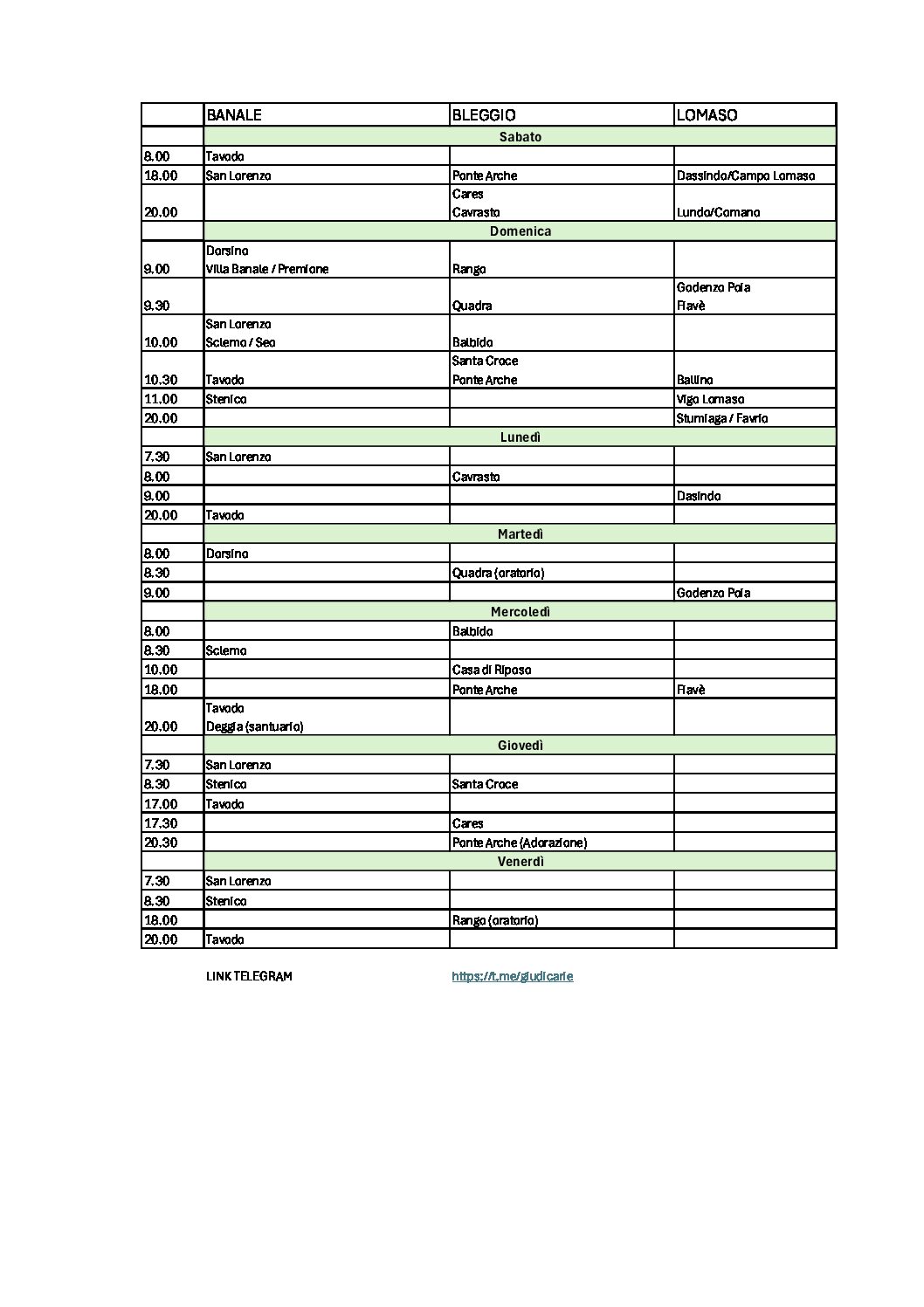 Zona delle Giudicarie Tione – U.P. Borgo Lares e Cristo Acqua viva Val Rendena Bleggio – Lomaso – Banale Valle del Chiese