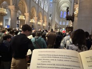 Alla lettura della Lettera apostolica di beatificazione, firmata da papa Leone XIV, si è alzato l’applauso dei duemila tra vescovi, preti e fedeli che hanno affollato le bianche navate di Notre-Dame. A seguire è state scoperta l’immagine che simboleggia il martirio dei nuovi beati, raffigurati attorno alla croce salvata dal rogo di Notre-Dame.