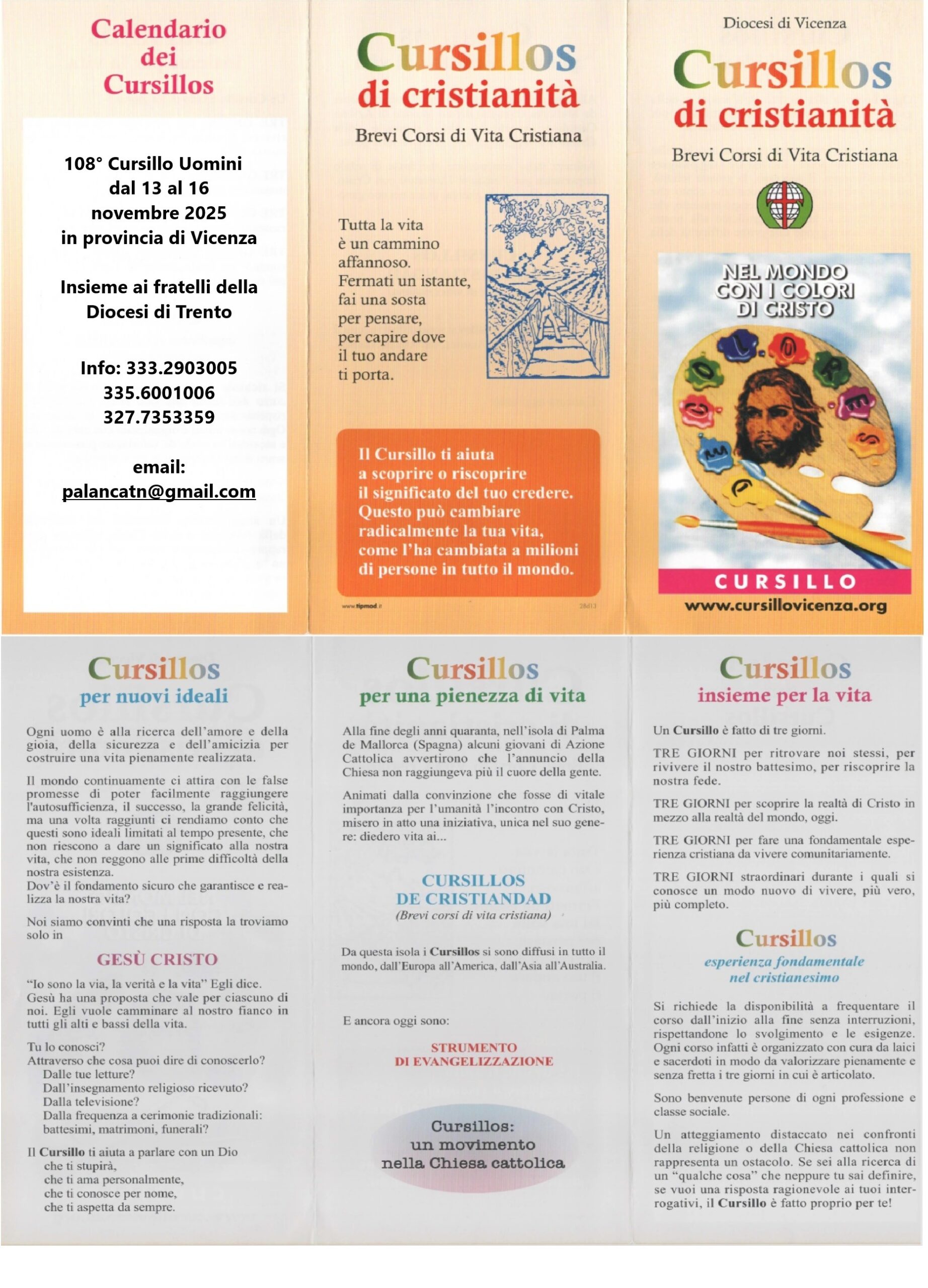 Dal 13 al 16 novembre i Cursillos di cristianità, insieme ai fratelli della Diocesi di Trento, organizzano il 108esimo “Cursillo Uomini”.