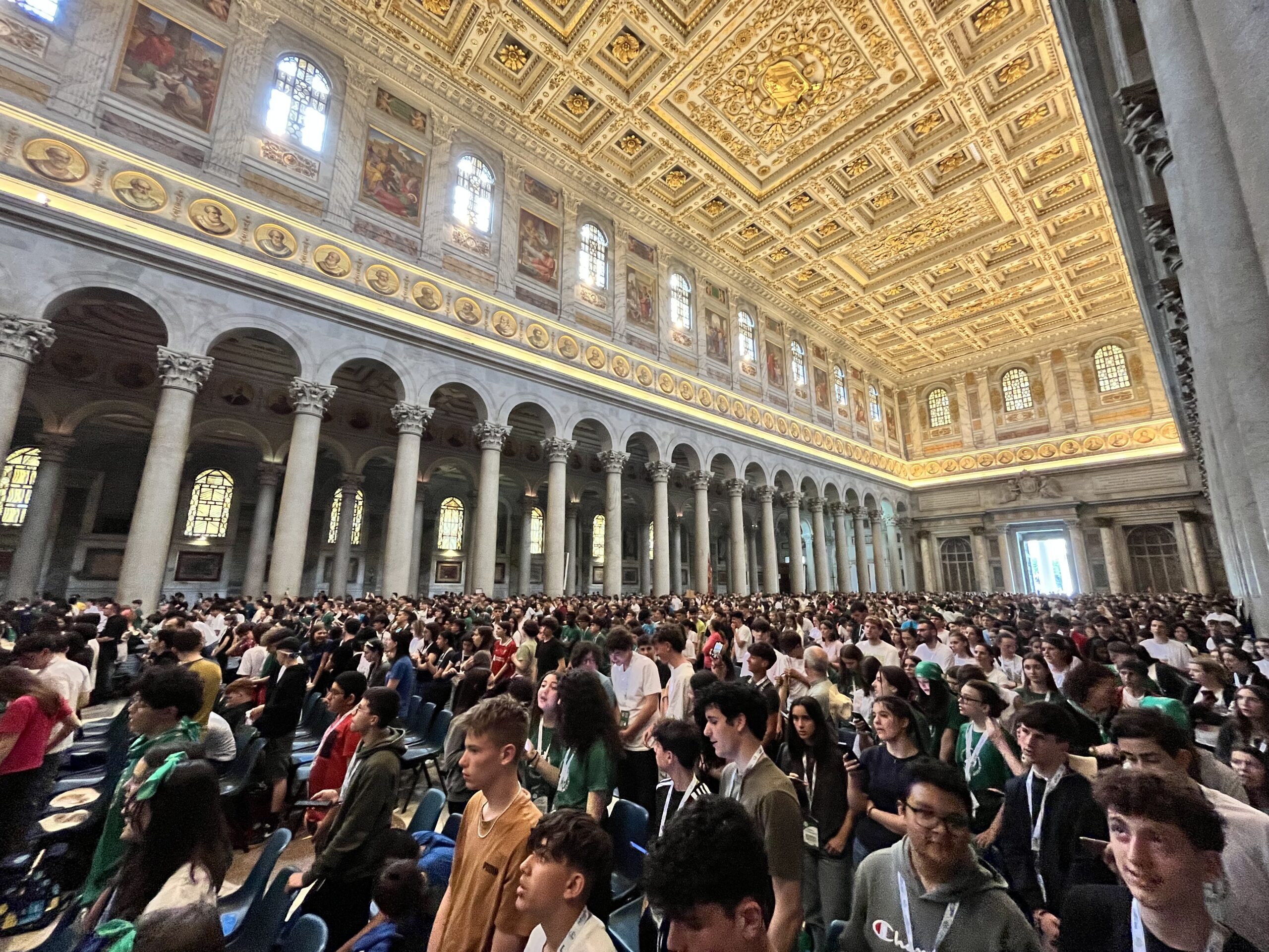 In mattinata i ragazzi e le ragazze hanno lasciato i loro alloggi in Toscana per raggiungere Roma, fulcro del loro viaggio e del loro pellegrinaggio. Arrivati in Fiera, la loro “casa” per questo weekend, i ragazzi hanno ricevuto il loro kit e sono partiti per il centro, dove sono stati accolti dal Vescovo Lauro nella chiesa di Sant’Andrea della Valle per un momento di catechesi.