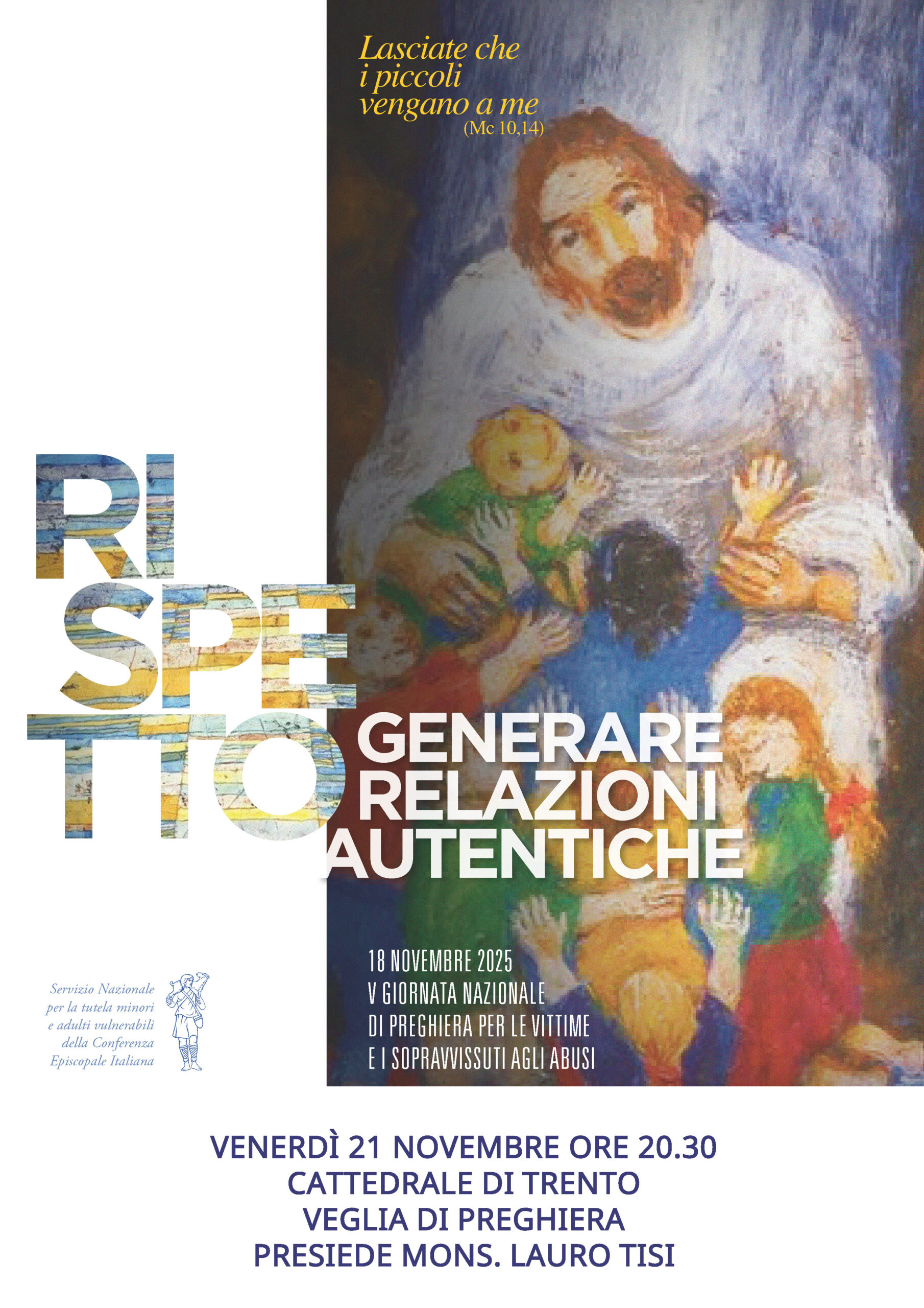 Il tema della Veglia di quest’anno sarà il Rispetto, declinato nell’invito a “generare relazioni autentiche”, in sintonia con la V Giornata nazionale di preghiera per le vittime e i sopravvissuti agli abusi nella Chiesa, in calendario martedì 18 novembre. Il versetto evangelico scelto – «Lasciate che i piccoli vengano a me» (Mc 10,14) – richiama la cura che Gesù ha sempre rivolto ai più piccoli e ai più fragili.