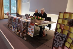 Nel laboratorio interattivo animato da Riccardo Santoni del Forum trentino per la pace e i diritti umani che nel pomeriggio ha accomunato ragazzi, giovani e adulti è stato infine presentato il testimone di pace Giuliano Pontara, filosofo e attivista della nonviolenza nato a Cles nel 1932 e rifugiato a Stoccolma nel 1951 dopo aver rifiutato di fare il servizio militare. Precursore dell’obiezione di coscienza, il fondatore dell’Università della Pace a 94 anni ancora testimonia con parole e gesti concreti la via della pace attiva attraverso il decalogo della nonviolenza. Empatia e mitezza, dialogo e fiducia negli altri, coraggio e pazienza, ripudio della violenza e rifiuto dell’autorità, capacità di identificare le forme anche insidiose della violenza e spirito di abnegazione sono le dieci caratteristiche con cui affrontare i conflitti trasformandoli, allenando competenze e capacità. Perchè una società è pacifica se ha tanti cittadini nonviolenti, se scegliamo con e per gli altri, se ognuno partecipa guardando al bene di tutti, prendendosi cura della vita democratica dentro la comunità e la città degli uomini. Con le piccole azioni e i gesti semplici possiamo cambiare il mondo da dentro, perché la vita vince sempre, in una logica evangelica ma anche nella misura in cui ognuno si impegna a fare la sua parte, coltivando spazi, linguaggi ed esperienze comuni dentro la diversità. (Anna Rigoni)