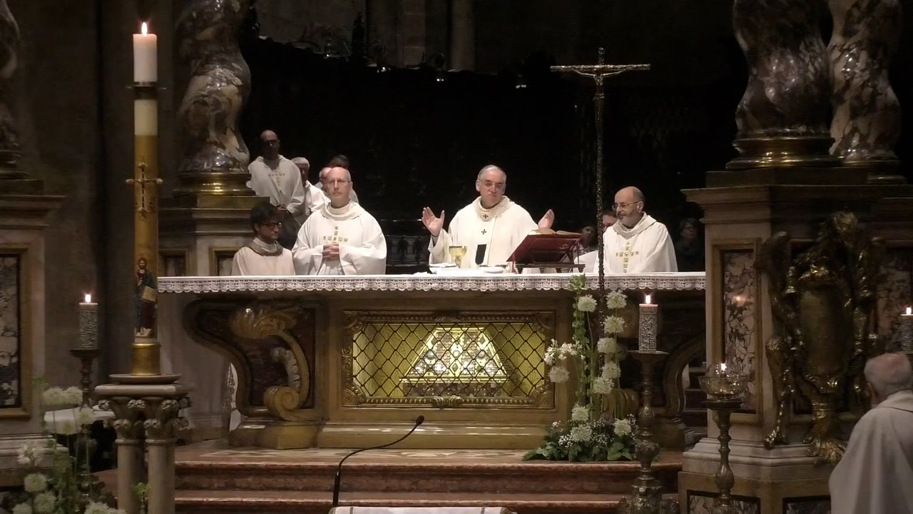 “È Cristo – sottolinea ancora l’Arcivescovo – il disarmato che disarma, è lui il risorto, vivo, che cambia ritmo alle parole. Che cambia ritmo al cuore. Che pone i gesti della pace. È il risorto che con il suo Spirito consegna agli uomini e alla Chiesa di oggi la possibilità di mandare in onda parole disarmate e disarmanti, sentimenti disarmanti e disarmati e gesti di compassione, di tenerezza, di bontà”.