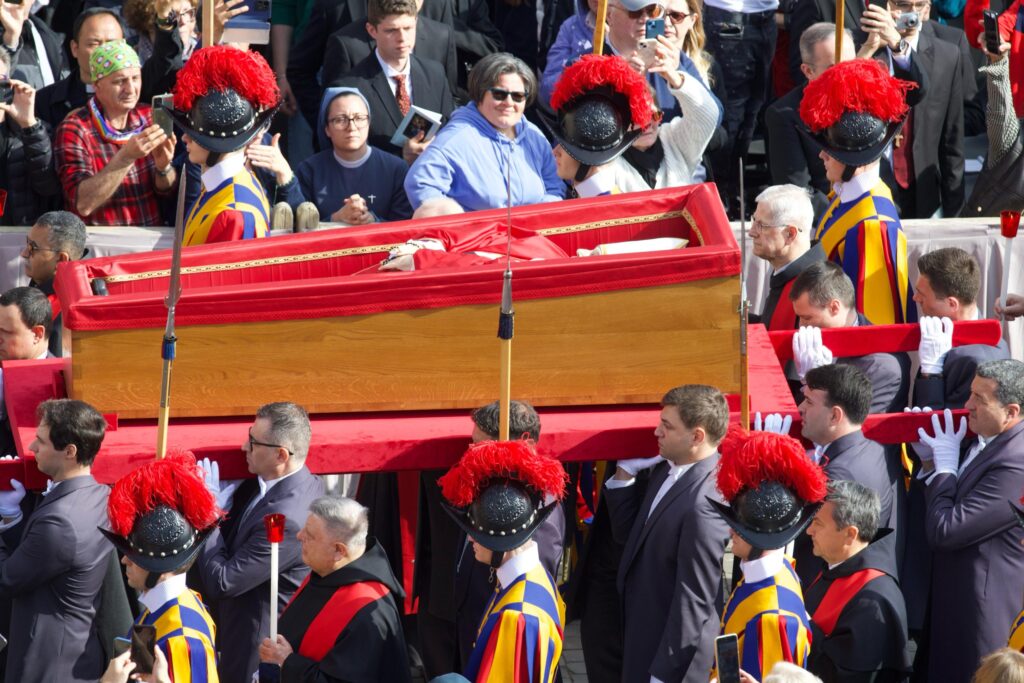 Nella mattinata di mercoledì 23 aprile la salma di papa Francesco è stata portata a spalla e in processione dalla sua residenza a Santa Marta alla Basilica di San Pietro, dove le spoglie del Papa, scomparso nel Lunedì dell’Angelo, riceveranno l’omaggio dei fedeli prima della messa esequiale prevista per sabato.