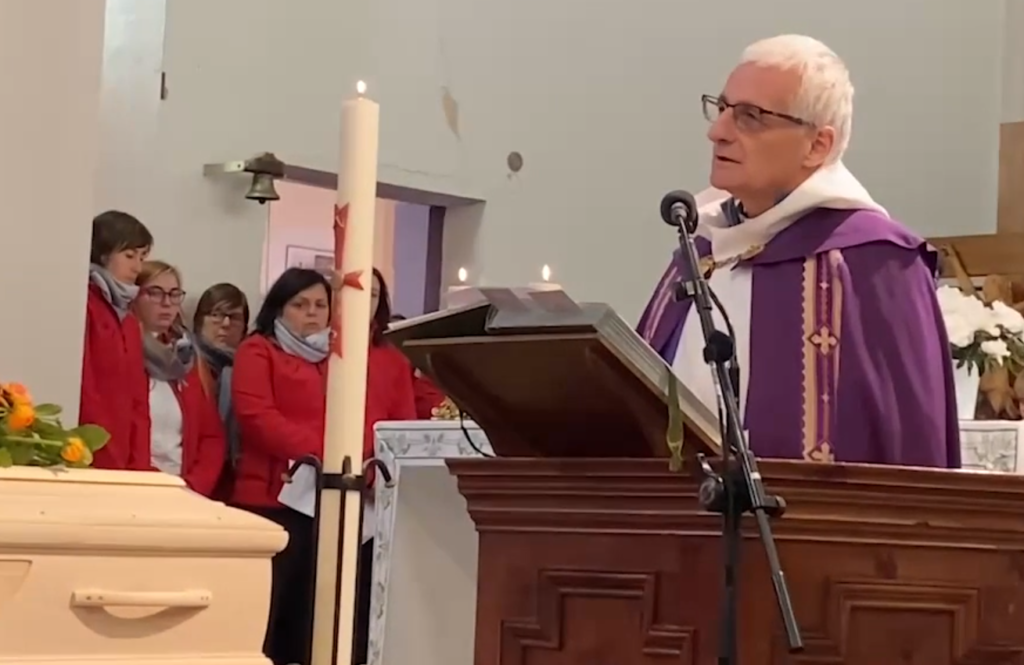 (L’immagine di don Dell’Eva durante l’omelia è un fotogramma tratto dal video pubblicato su giornaletrentino.it)