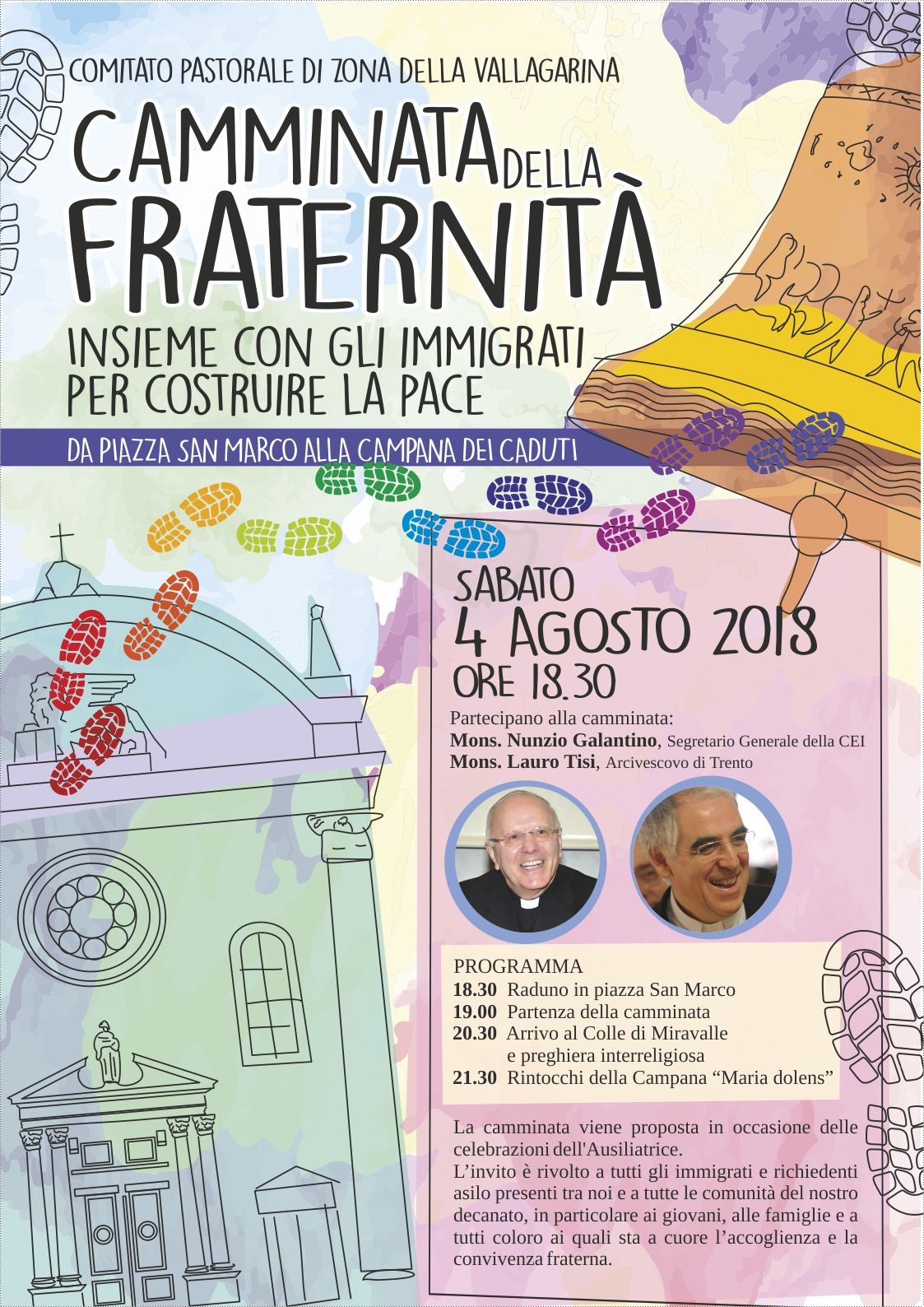 La camminata viene proposta in occasione delle celebrazioni dell’Ausiliatrice. L’invito è rivolto a tutti gli immigrati e richiedenti asilo presenti tra noi e a tutte la comunità del decanato di Rovereto, in particolare ai giovani, alle famiglie e a tutti coloro ai quali sta a cuore l’accoglienza e la convivenza fraterna.