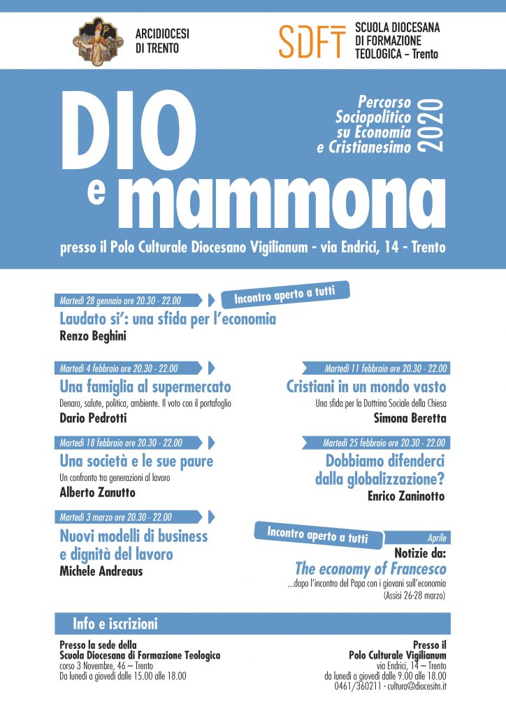 Renzo Beghini introduce, nell’incontro aperto a tutti, il percorso sociopolitico su economia e cristianesimo “Dio e Mammona”.